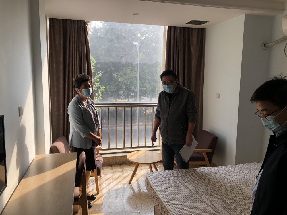 潘音先后視察了學(xué)士賓館整體布局、客房配置、樓頂設(shè)施設(shè)備、裝修施工現(xiàn)場,聽取了裝修方案匯報、施工進展情況匯報,詳細了解各項裝修細節(jié),并對前期工作予以肯定。