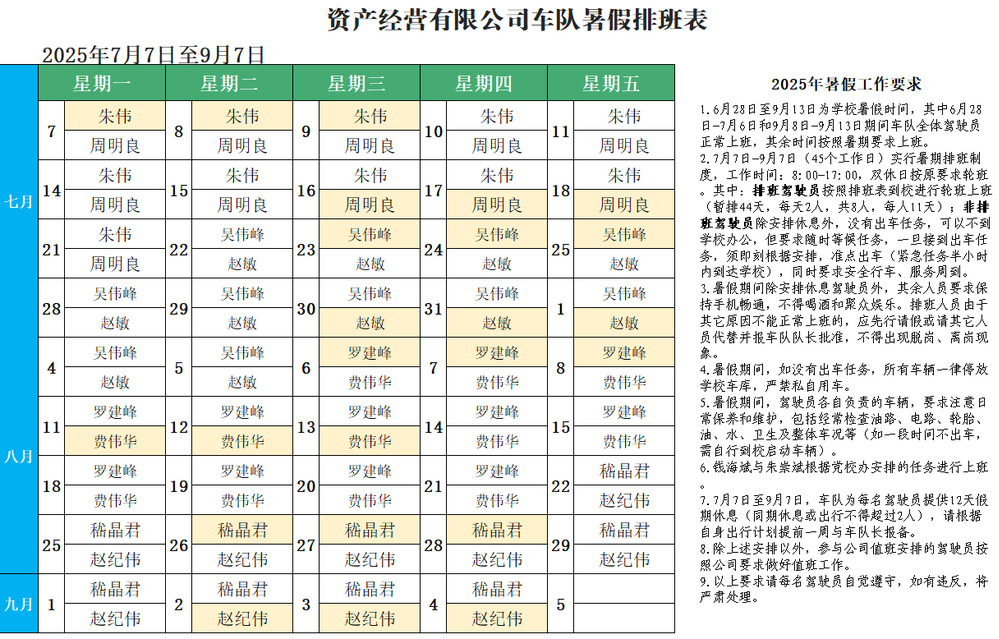 資產(chǎn)經(jīng)營有限公司2025年暑假車隊排班安排